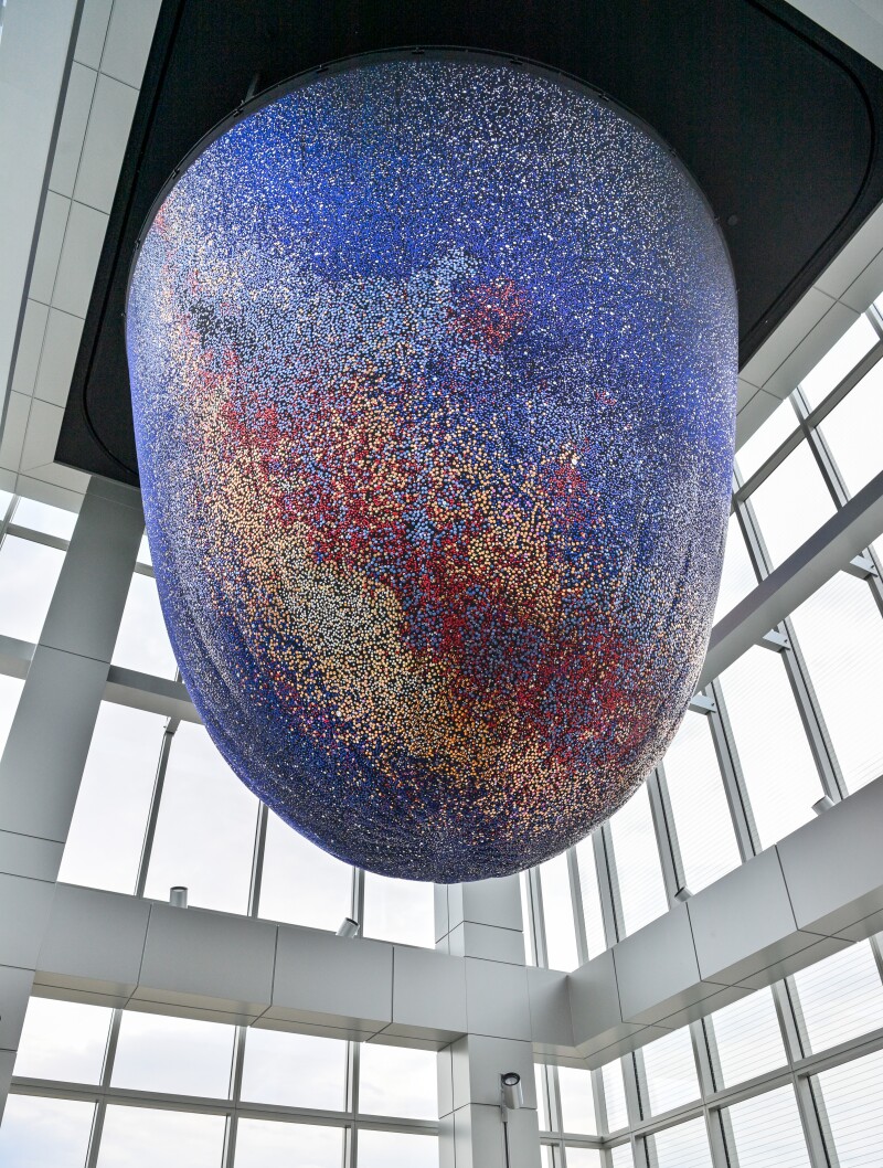 It’s part of the Thrivent Art Collection: A fabric sculpture created by Benjamin Ball of the Los Angeles-based Ball-Nogues Studio. Called Portrait of a Southern Sky, the installation brings together science and art to depict the cosmos.